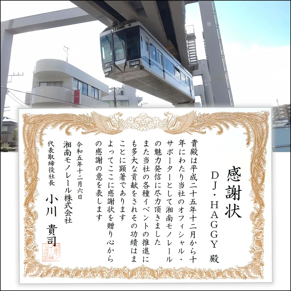 【DJ・HAGGY 湘南モノレール株式会社オフィシャル・サポーター任命10周年】になります。