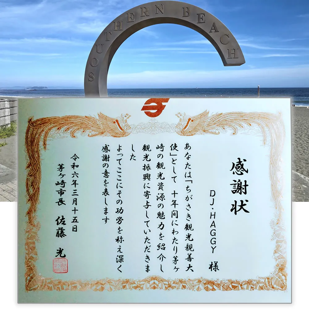 【DJ・HAGGY ちがさき観光親善大使(神奈川県茅ヶ崎市)任命10周年】になります。