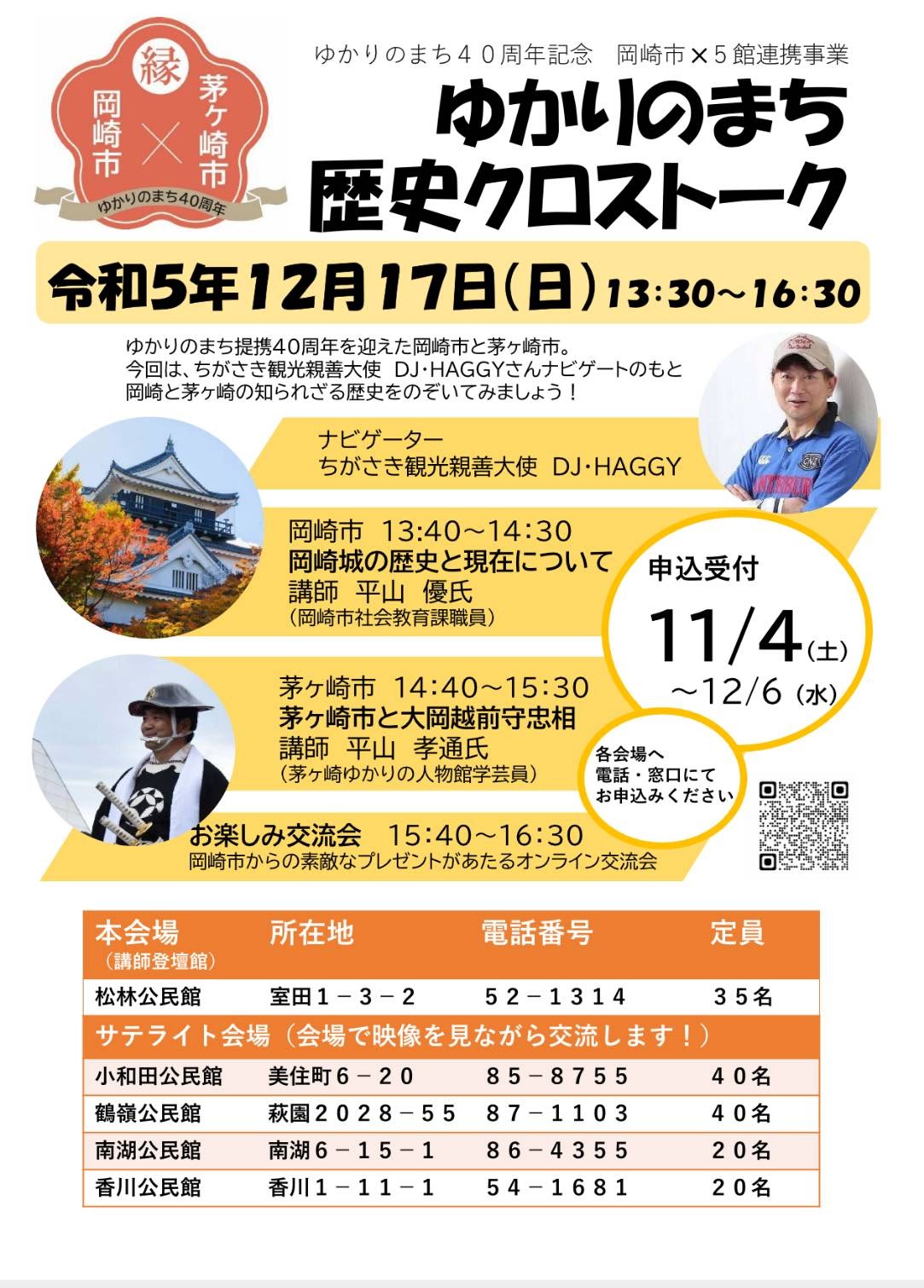【岡崎市茅ヶ崎市ゆかりのまち提携40周年事業~岡崎市~茅ヶ崎市5つの公民館連携事業「ゆかりのまち 歴史クロストーク」】